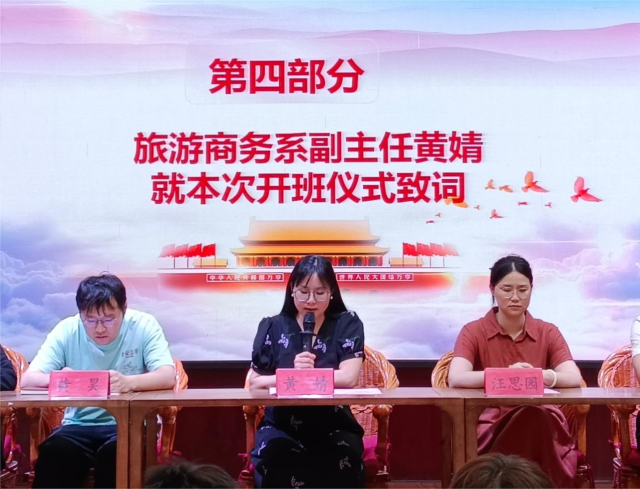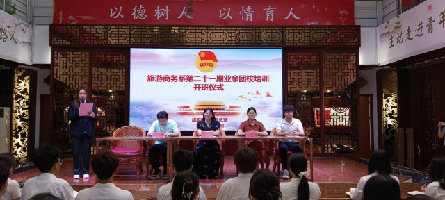 为进一步推动学校共青团工作开展,持续深入做好新时代团员发展工作,全面加强团员队伍先进性建设,发展高质量团员,增强团组织战斗力、凝聚力,教育引导广大青年听党话、跟党走,让优秀青年以更高的标准要求自己,做好表率,提高责任感和使命感。旅游商务系团总支于5月16日中午13:50在“婧姐”名班主任工作室开展第二十一期业余团校开班仪式。出席本次仪式的有旅游商务系学生党支部书记黄婧、旅游商务系党支部组织委员汪思园、旅游商务系团总支书记黄昊、旅游商务系团总支副书记马慧媛、旅游商务系团总支组织部陈锐以及2024年入团积极分子培训班学员。