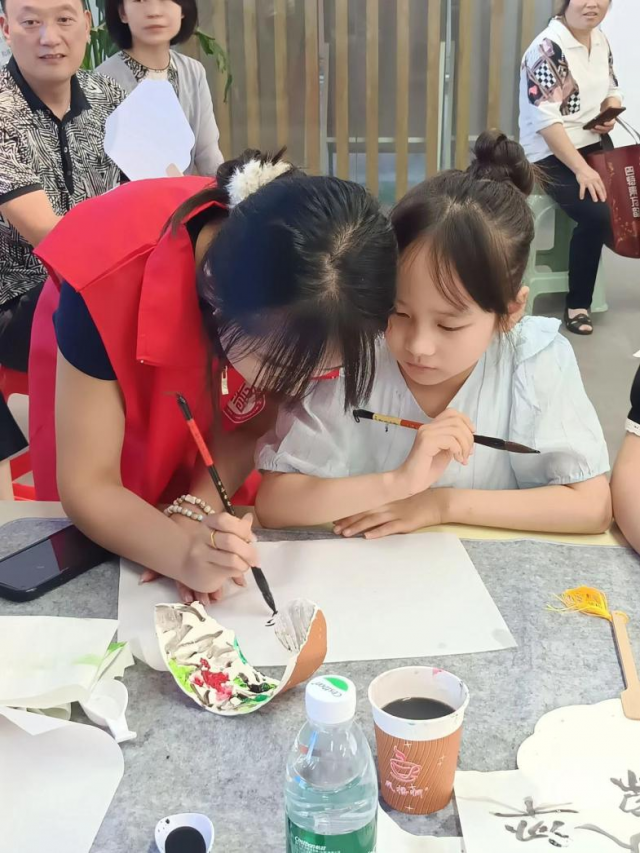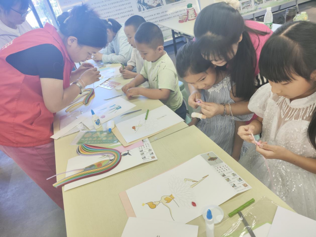 服务队员们耐心教导,示范模仿,讲述衍纸故事,以寓教于乐的方式让小朋友们沉浸在制作漆扇,衍纸画的乐趣当中。