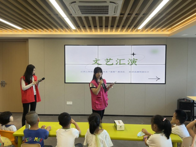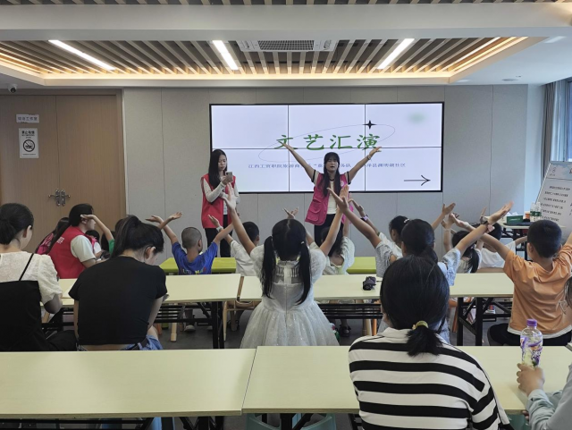 中午休整过后,本次渊明社区的各项实践活动也临近尾声,队员们为小朋友们准备了一场文艺汇演,来告别社区的小朋友们,同样也让小朋友们参与进来。