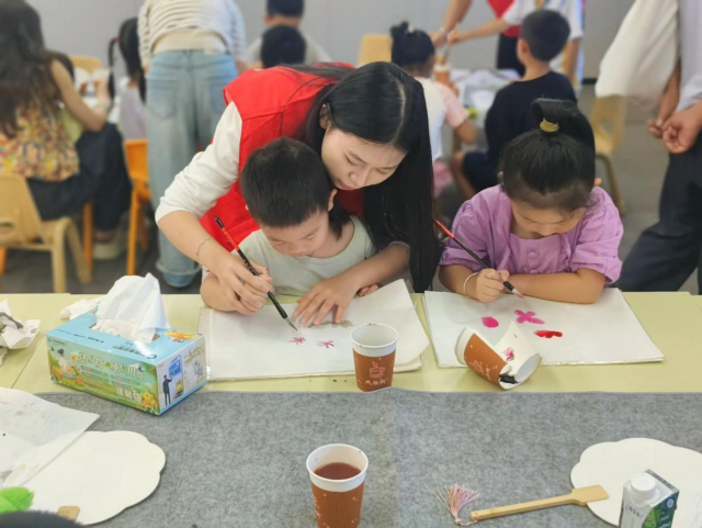 7月8日上午,实践队在渊明湖社区开展“传承非遗文化”公益课堂。小朋友们满怀好奇,积极参与进课堂。