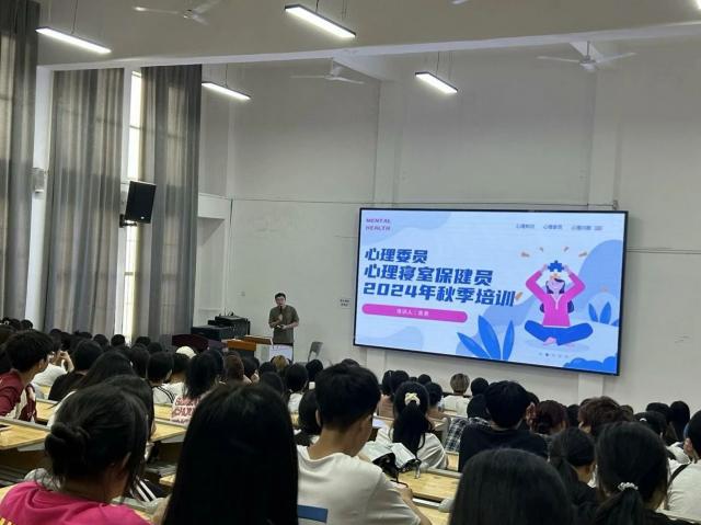 为做好旅游商务系全系心理工作,帮助各班心理委员明确工作职责,强化心理委员责任意识,提高心理委员业务能力,旅游商务系学工办于2024年9月26日中午一点在志学楼214开展2024年秋季心理委员、心理寝室保健员培训,此次培训由系心理工作老师黄昊主讲。