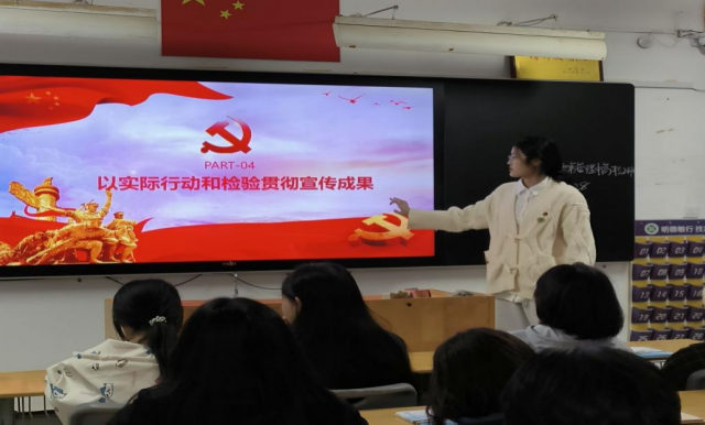 宣讲最后,青马工程学员黄裕林进行总结。她指出,作为青年学子,应当积极响应党和国家的号召,持续加强自身的理论修养,积极参与社会实践,将理论和实践深度结合,同时不断提升自身的综合素质和各项能力,以高度的社会责任感和历史使命感彰显青年人的时代担当。