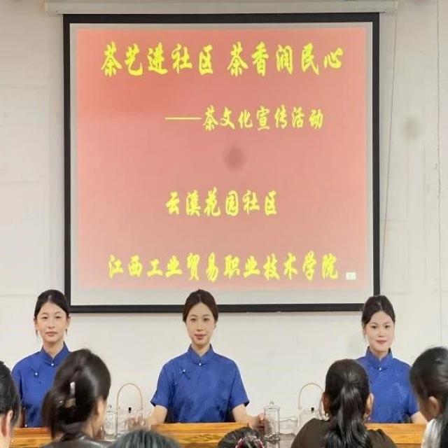 为进一步提升我院职业教育服务社区、促进职业教育与社区教育融合创新发展。江西工贸职院携手云溪花园社区开展“社区教育”系列活动。11月13日下午,江西工贸职院旅游商务系副主任韩莹、学前教育专业黄悦教师以及童话一“夏”创客空间的学生志愿者们精心筹备的社区公益活动火热开展,此次活动分为三个部分:茶香润民心、妙扇生花以及“柿柿”如意。志愿者们将爱心的光辉洒向社区的每一个角落,将传统文化充分融入活动之中,展现出学院积极投身社区公益教育的良好风貌。 茶艺近社区,茶香润民心 活动正式开始,首先由韩莹副主任对茶文化知识进行了生动有趣的讲解。随后,学生志愿者们展现了精彩而又优美的茶艺表演。志愿者们手法娴熟、动作优雅,洗茶、泡茶、分茶,每一个步骤都有条不紊。伴随着潺潺的水流声,茶叶在水中舒展的曼妙姿态,以及袅袅升起的茶香,瞬间将现场的氛围烘托得格外清幽雅致。居民们不禁看得入了迷,眼中满是赞叹与好奇。