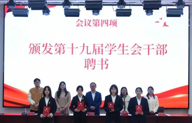 会议第四项,颁发第十九届学生会干部聘书。这意味着学长学姐在旅游商务学生会的征途圆满结束,而新一届学生会的征途才刚刚开始。让我们展望未来,书写旅游商务系学生会工作绚丽多彩的新篇章!