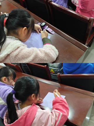 观看电影啦 认真观看电影的小朋友们 在第一部分的内容讲述完毕后,志愿者给小朋友们分发彩纸和画笔,让小朋友们按照自己的理解描绘出不同情绪产生时脸上可能会展现的表情,并鼓励她们上讲台来介绍自己的作品。