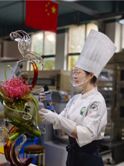 李嘉玲,江西工业贸易职业技术学院旅游商务系2022级西式烹饪工艺2班的学生,在校期间任副班兼体委、“美贸西点社”社长。曾获江西省“赣青苹”理论评论大赛文字类三等奖、全国大学生创新创业大赛总决赛铜奖、第八届“洪城杯”职业技能大赛优胜奖、“赣江新区杯”大创课大学生职涯探索实训活动获offer卡;荣获2022至2023学年度国家励志奖学金、2024年6月学院景德镇“糖艺/西点制作”职业教育活动周一等奖、蝉联学院第十八届第十九届田径运动会100m金牌、优秀运动员、二等奖学金、优秀学生干部、三好学生、优秀志愿者等荣誉称号。 人生格言:行之力则知愈进,知之深则行愈达。 一、信念之光,导航梦想之舟 李嘉玲,出生于农村的一个普通家庭,父亲身体状况欠佳,经济来源主要来自于母亲,弟弟因自身原因和家庭经济情况辍学目前无业。家中起初并不支持我继续求学,但我决心已定,排除万难也要坚持我的立场——最终我来到了江西工贸,成为商舟学子一员。我常常思考,我应该往哪走?如何做?在一步步的实践和积累中,我终于有了答案,那就是世界技能大赛糖艺/西点制作中国集训基地!孕育我的梦想,走上我的西点之旅。 二、实践磨砺,锻造奋进之魂