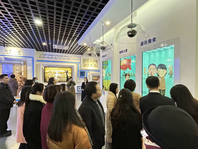为扎实推进党风廉政建设,将廉洁文化深度融入双高院校建设发展进程,旅游商务系教师党支部走进江西廉文化馆,共同开展了一场极具教育意义与实践价值的党日活动,在传承廉洁精神的同时,积极探索双高建设新路径。 活动伊始,由党支部书记谢恺带领大家学习关于习近平总书记在二十大的讲话精神,然后为进一步强化党员的廉洁意识和责任担当,活动特别设置了“双高建设中的廉洁承诺”宣誓环节。全体党员面向党旗,庄严宣誓,郑重承诺在双高建设工作中,坚守廉洁底线,秉持敬业精神,勇于创新探索,积极投身于教育教学改革、产教融合发展、社会服务提升等各项重点任务,以实际行动为双高院校建设添砖加瓦,为党和人民的教育事业不懈奋斗。