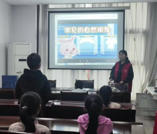 课堂伊始,李海霞同学以生动的语言,引领大家探索云和雨的形成奥秘。她详细讲解了水蒸气如何升腾、云层如何凝聚,以及雨滴如何从天空降落的过程。李同学的讲解既科学又易懂,让在场的孩子们对自然现象充满了好奇和敬畏。