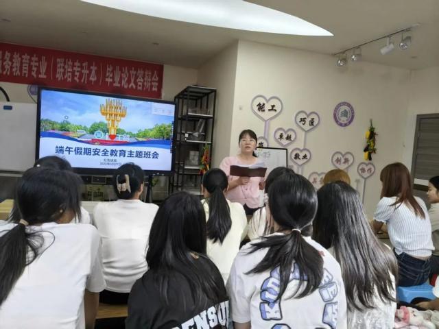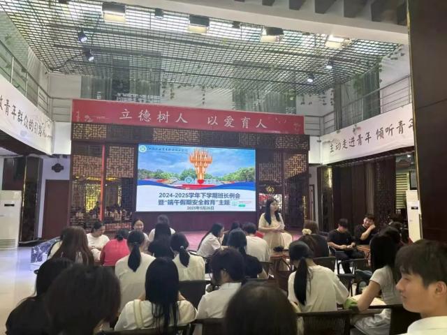 二、班长例会: 贯通末梢压实安全传递链条 学管员肖琴琴老师组织召开全系班长专题会议,围绕端午假期安全管理开展专项培训。会议深入解读《端午假期安全须知》,明确班干部“安全信息员”职责定位,要求通过班级群、主题班会等多元渠道,向全体学生传达交通安全、防溺水、饮食卫生、反诈防盗等安全提示。肖琴琴老师强调:“班干部要主动担当,密切关注同学动态,确保‘离校不脱管,安全无死角’,异常情况务必第一时间上报。”