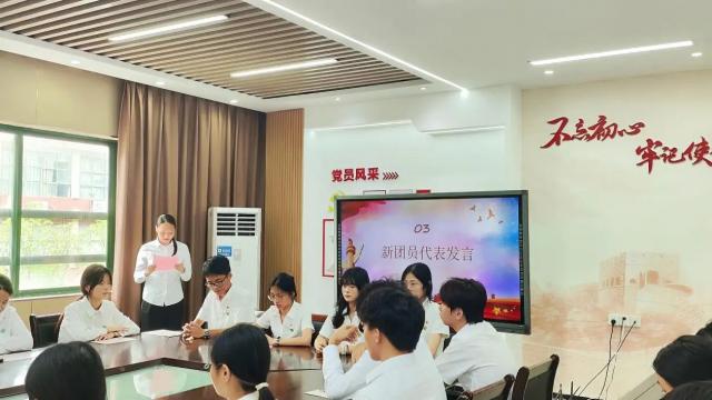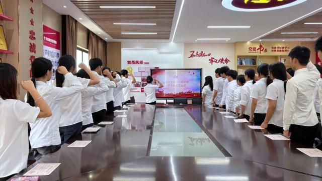 议程第四项,在旅游商务系团总支副书记黄裕林的带领下,新团员们举起右手,庄严宣誓。他们用洪亮而坚定的声音,许下对共青团的忠诚誓言,表达了对团组织的热爱与敬意。这一刻,他们正式成为共青团的一员,肩负起新时代青年的使命与责任。