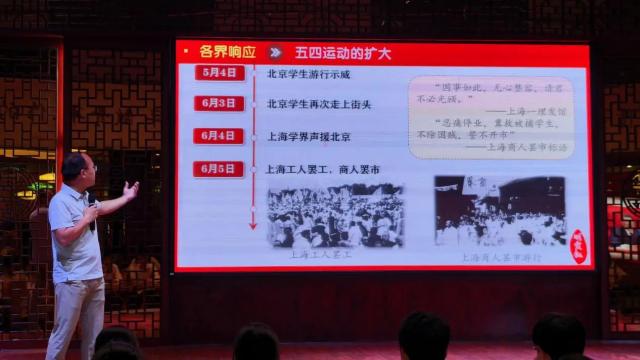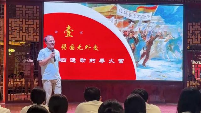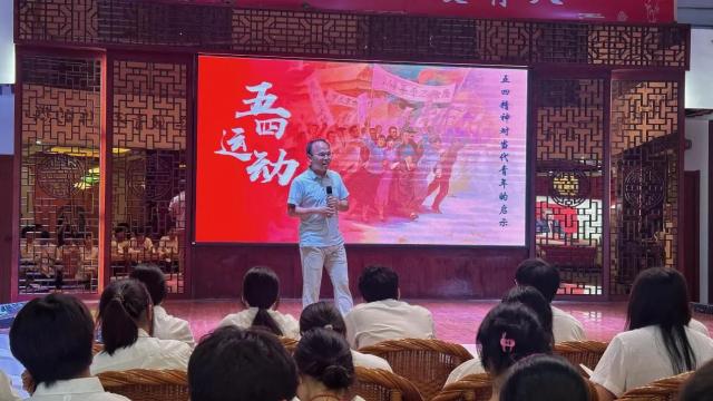 随后,吴剑锋老师在讲述五四运动爆发的历史进程时强调,百年前的青年们,在时代的“考卷”前,以滚烫的热情与炽热的鲜血,书写下壮丽的答案。如今,我们虽置身于和平繁荣的新时代,但使命的号角从未停歇,新的“长征路”已然铺展,一道道时代“考题”正等待我们去解答。同学们深受鼓舞纷纷表示,作为新时代青年,必将传承先辈的精神火炬,弘扬五四精神,在历史赋予的新征程中,以坚定的信念与昂扬的姿态,一路奋勇向前,续写青春华章。