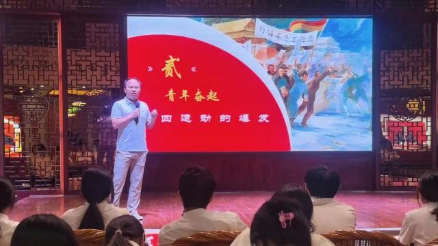 为深入学习贯彻五四精神,引导当代青年从历史中汲取奋进力量,传承和弘扬不朽的五四精神,进一步激发青年学子的爱国情怀与责任担当,旅游商务系第二十三期业余团校第四讲于6月5日晚上七点在旅游商务系辅导员工作室如约开讲。本次团课由吴剑锋老师主讲,以“汲取五四力量,续写时代华章”为主题,为同学们带来一场涤荡心灵的精神洗礼。