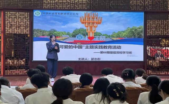 随后,旅游商务系学生会执行主席翟志彤分享“可爱的中国”主题实践教育活动。翟志彤同学以自身参与社会实践经历为切入点,讲述参观上饶集中营革命烈士纪念馆、闽浙皖赣革命根据地旧址时的深刻感悟,生动展现红色遗址中承载的革命精神与家国情怀。她表示道作为新时代青年,我们既要做红色文化的“倾听者”,更要做“传播者”,让革命薪火在青春接力中代代相传。