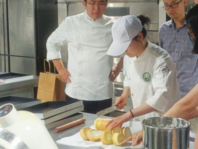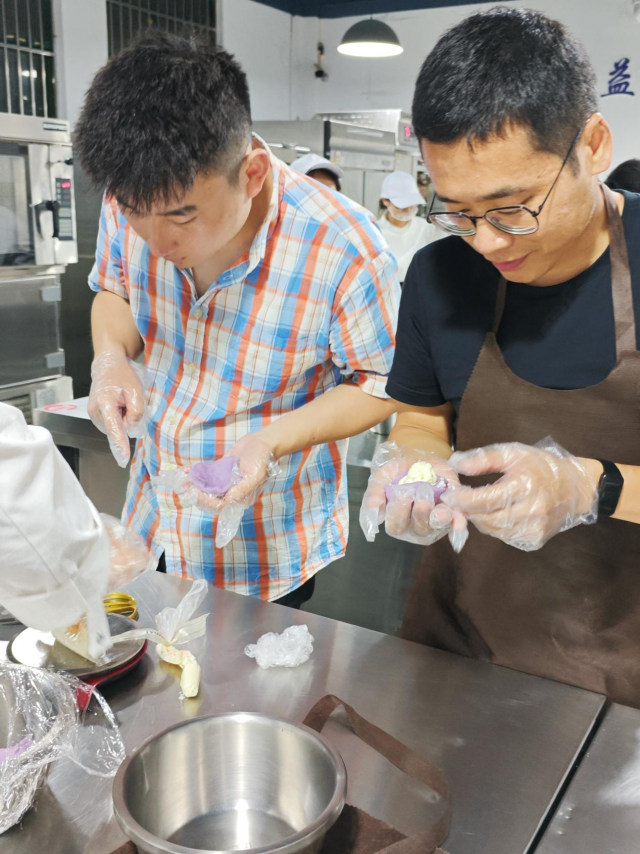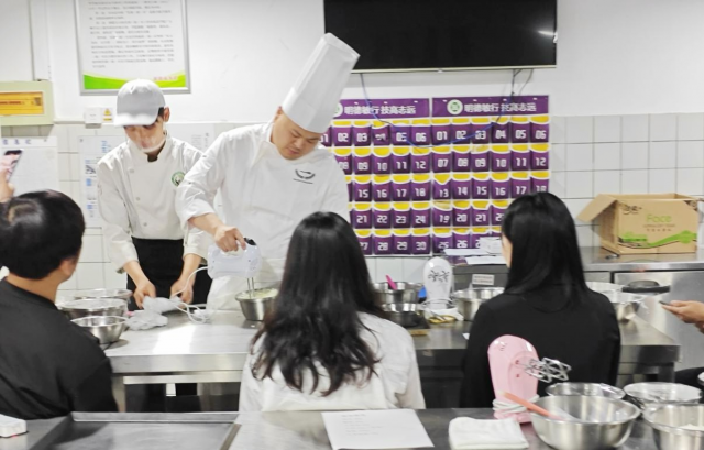 近日,由机关工委组织的青年烘焙体验课活动在江西工业贸易职业技术学院乐学楼烘焙教室顺利完成。旅游商务系充分发挥专业教学资源优势,为活动提供场地、技术指导等支持,助力青年们开启趣味烘焙之旅。 自2025年4月22日起,每周二晚,机关工委的30名青年学员,以2人一组、共15组的形式参与课程。旅游商务系专业教师宋振语、罗凯、刘兆凯、左美婷等全程指导,围绕曲奇饼干、芒果雪梅娘大福、蛋糕卷等多样烘焙产品展开教学。从原料配比到制作技巧,从造型装饰到成品验收,教师们耐心讲解、示范,帮助学员们掌握烘焙要领。 活动期间,学员热情高涨,在专业教室优质环境里,亲手完成曲奇的酥脆成型、雪梅娘的软糯包裹,将翻糖塑造成娇艳玫瑰,把创意融入蛋糕卷与纸杯蛋糕。大家在实践中感受烘焙乐趣,提升动手能力,增进了彼此交流。 曲奇饼干