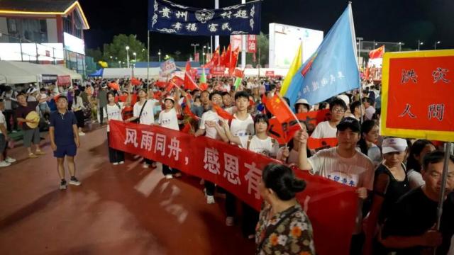 活动伊始,“童稚”服务队与车民街道社区组织的少数民族队伍一起进行“感恩大游行”。大家笑容真挚,神情热切,喊出“风雨同舟,感恩有您”的响亮口号,表达对社会各界无私支援榕江、助力重建家园的深深谢意。