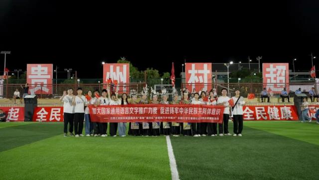 榕江村超感恩情,推普助力一家亲丨江西工贸职院旅游商务系“童稚”服务队前往贵州省榕江县开展全国“推普助力乡村振兴”活动(一)、 为深入贯彻习近平新时代中国特色社会主义思想,落实“加大国家通用语言文字推广力度”的重要指示精神,助力乡村文化振兴,促进各民族交往交流交融,江西工贸职院旅游商务系“童稚”服务队于7月26日奔赴贵州省榕江县开展推普助力乡村振兴系列实践活动。榕江县经历6月底的洪水,各方都来援助,本次榕江县“村超”重启!是“超级星期六”更是“感恩之夜”,“童稚”志愿服务队队员受车民街道邀请,有幸参加了本次“村超”的感恩大巡游活动。在这片充满了感恩、热情和积极向上的土地上,“童稚”服务队也开展了接地气、有温度的推广普通话活动,让语言的桥梁与体育的热情在榕江大地上同频共振。