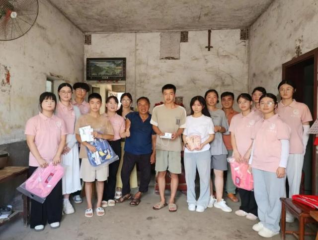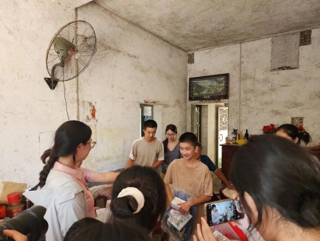 实践团首访姜家时,一幅令人动容的教育图鉴映入眼帘,年迈多病的老人与四个莘莘学子,构成了这个家庭负重前行却又向阳而生的生活剪影。再苦不能苦孩子,再穷不能穷教育,姜家人将微薄的收入化作孩子们课本上的墨香,用布满老茧的双手托举起知识改变命运的坚定信仰。 临别时赠送的文具套装上,长风破浪会有时的烫金题字,恰似一柄劈开命运枷锁的利剑,不仅是对孩子们的鼓励,更诠释着 “扶贫先扶志”的深刻内涵,仿佛在告诉孩子们,只要怀揣梦想,勇往直前,定能冲破困境,驶向光明未来。