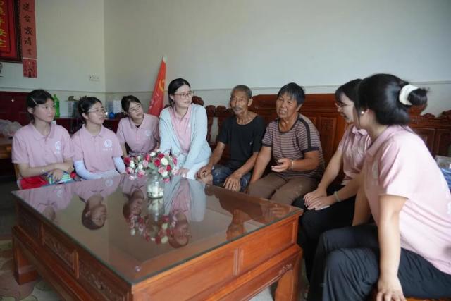 在廖家中,服务队成员围坐在温暖的厅堂里,倾听老人讲述那些沉淀在岁月里的故事。老人布满皱纹的双手轻轻比划着,眼神里闪烁着过往的光辉。志愿者们静静聆听,时而点头微笑,时而轻声提问,时光仿佛在此刻放慢了脚步。 老人打开了话匣子,从艰苦年代的奋斗历程,到如今乡村的点滴变化,娓娓道来。老人的讲述不仅是一段个人记忆,更是一幅乡村发展的生动画卷,勾勒出岁月的变迁与乡村的成长。堂前孝为德本的家风牌匾,在这样温情的交流中更显熠熠生辉,传递着家族的传承与乡村的精神底蕴。 临别之际,服务队成员为老人送上精心准备的慰问品,表达对老人的敬意与关怀。不仅是一次温暖的陪伴,更是一次精神的传承。它让年轻一代从老一辈的故事中汲取力量,让乡村振兴的每一步,都承载着历史的温度,延续着乡村的记忆与精神。