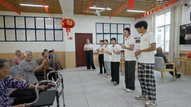 晚餐过后,老人们慈爱地握着实践队员的双手,连连称赞,那温暖而有力的双手传递着无尽的感激与认可,他们表示很高兴有这样一群孩子陪伴自己聊天、一起准备晚餐。敬老院内载歌载舞,学生与老人的欢声笑语交织在一起,如同一曲和谐的交响乐,构成了一幅无比温情、美好的画面。这画面,是爱与关怀的凝聚,是青春与暮年的美好邂逅。