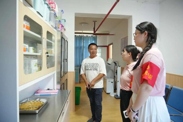 梁院长带着队员们来到宿舍区参观。该敬老院目前共收纳59名老人,其中特困人员32名,社会托养人员27名,配备工作人员10名,院内配备了评估室、医务室、心理咨询室、阅览室等,宿舍每个房间床铺柔软舒适,桌椅摆放整齐,窗户明亮通透,每个门口都设置了服务对象和基本情况以及责任管理员,药房里摆放着整齐的药架,上面陈列着各种常用药品,会根据老人们的身体状况定期为他们进行体检和健康评估,并为他们制定个性化的用药方案,每位成员都配置了独立药箱,所用药品都是经过严格筛选和采购的,确保质量安全可靠。”让老人们住得安心、舒心。”