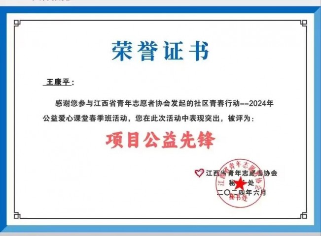 三、实践担当 志愿先锋 在工作中,“知行合一,行胜于言”是我的准则。作为青志协成员,我积极参与南昌西站、福利院、社区等志愿活动,以踏实肯干、积极进取的态度履职尽责,荣获“优秀志愿者”“公益先锋”等荣誉;在班级中,我也热心服务同学,主动承担责任。在这些实践中,我不仅收获了帮助他人的快乐,更锻炼了组织协调与团队协作能力,用实际行动践行新时代青年的责任与担当。