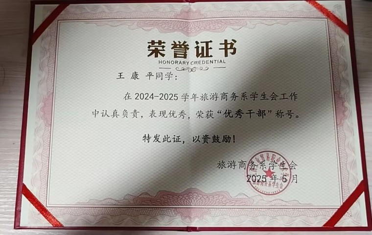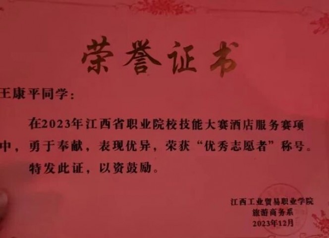 王康平,男,共青团员,2023级城市轨道交通运营管理专业学生。现担任副班长、旅游系文体部副部长。热爱羽毛球、跑步,积极进取。在校期间活跃于青志协与文体部,勇于担当。曾在城轨智能运输技能竞赛中一路突围,斩获世界职业技术大赛铜奖、省赛三等奖,并荣获“二等奖学金”“优秀志愿者”“优秀干部”“公益先锋”等荣誉。 一、思想如炬 信念如磐 在思想上,遵纪守法,自觉遵守学校、院系的各项规章制度,树立正确的世界观、人生观与价值观。在团组织的学习和实践中,不断提升自身思想觉悟,牢记“为同学服务、为集体奉献”的宗旨,以积极向上的思想引领行动,在青春赛道上锚定正确方向。 二、学思精进 赛场逐梦 在学习上,“学如逆水行舟,不进则退。”我深知学习是学生的首要任务,在城市轨道交通运输管理专业学习上刻苦钻研、目标明确。从城轨智能运输技能竞赛起步,我一路拼搏,先在赛事中崭露头角,继而晋级省赛斩获三等奖,最终在世界职业技术大赛中荣获铜奖。日常学习中,我注重学练结合,以严谨的态度对待每一项专业内容,力求将理论知识与实践操作深度融合;同时勤学好问,遇到疑惑及时与老师、同学交流,确保知识点理解通透,用竞赛赛道上的层层突破,诠释对专业的热爱与执着。