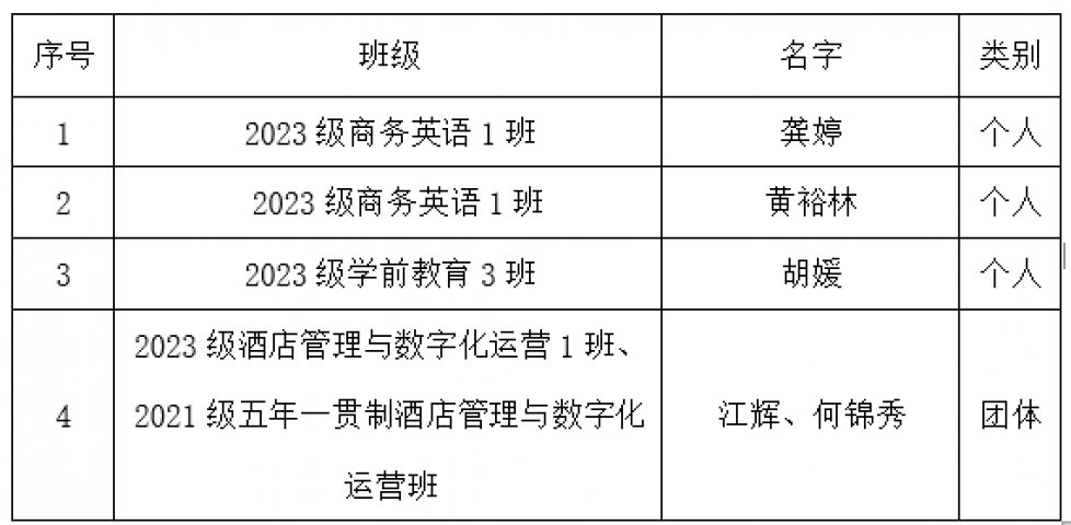 2024-2025学年旅游商务系院长奖学金评选公示根据《江西工业贸易职业技术学院院长奖学金评选办法》,经学生本人申请,班级民主初审并推荐,班主任、辅导员评议审核,系评议小组成员复核评审,专业系秉着坚持公开、公平、公正的原则,系部成立了评议小组并于2025年11月25日开展2024-2025学年院长奖学金评审工作会议,评审小组已对各班级推荐学生的资格和申请材料进行审核,确认参与学院评审的学生符合资格、申请材料真实有效、名单一致。专业系拟上报龚婷、黄裕林、胡媛、江辉、何锦秀同学申请院长奖学金候选人予以公示。 公示名单如下:
