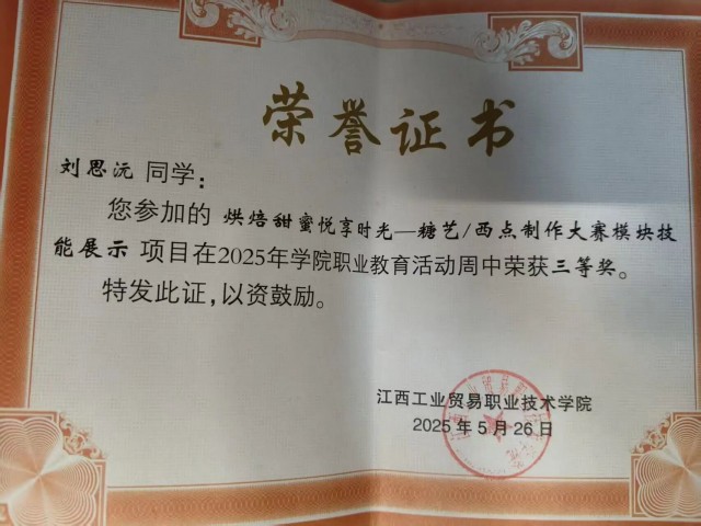 励志青春谱华章·笃行逐梦展风采|榜样人物第五十七期——刘思沅 刘思沅,女,2024级西式烹饪工艺专业学生,现担任班长,荣获2024-2025学年综合素质奖,两次获评三好学生称号。