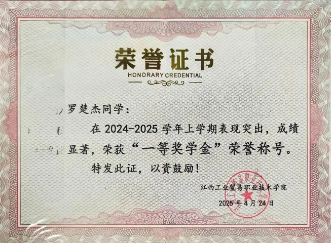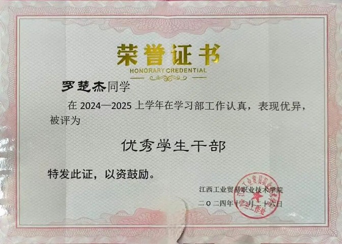 砥砺奋进绽芳华,青春执笔谱新篇|榜样人物第六十五期——罗楚杰 罗楚杰,男,共青团员,2024级酒店管理与数字化运营专业学生。现担任体育委员。荣获2024-2025学院一等奖学金,获评"三好学生"和"优秀学生干部"称号。 思想领航,信念如磐 在思想上,我积极向上,始终紧跟党的步伐,认真学习党的理论知识,时刻关注国家大事。我深知,作为新时代的青年,肩负着实现中华民族伟大复兴的历史使命。通过参加主题团日活动,我更加坚定了自己的理想信念,决心以实际行动为国家的繁荣富强贡献自己的力量。我积极参与志愿服务活动,关爱孤寡老人和留守儿童,用自己的爱心传递温暖,践行着一名新时代青年的社会责任。 学习奋进,勇攀高峰 学习上,我勤奋刻苦,目标明确。每天清晨,当第一缕阳光洒进校园,我便来到图书馆开始一天的学习。课堂上,我全神贯注,积极思考,踊跃发言;课后,我认真完成作业,广泛阅读相关书籍,拓展自己的知识面。在过去的两年里,我的综合成绩始终名列前茅,连续两个学年专业成绩排名第五,并获得了学校的一等奖学金。