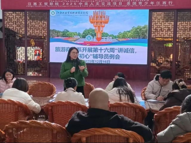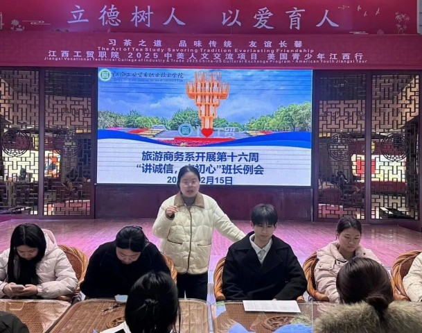 诚信之光映初心 铿锵誓言筑梦行——旅游商务系开展“讲诚信,守初心”主题活动 近日,旅游商务系以“讲诚信,守初心”为主题,开展了一系列层次分明、内涵丰富的主题教育班会活动,在全系学子中掀起了一股弘扬诚信美德、砥砺青春初心的积极热潮。本次活动以“自上而下、层层落实”的方式精心组织。12月16日中午旅游商务系学生党支部书记、分管学生工作副主任黄婧主持召开全体辅导员专题例会,明确了活动的核心意义与具体要求,强调了“诚信”与“初心”对于青年学子成长成才的基石作用,为活动奠定了坚实的思想基础。